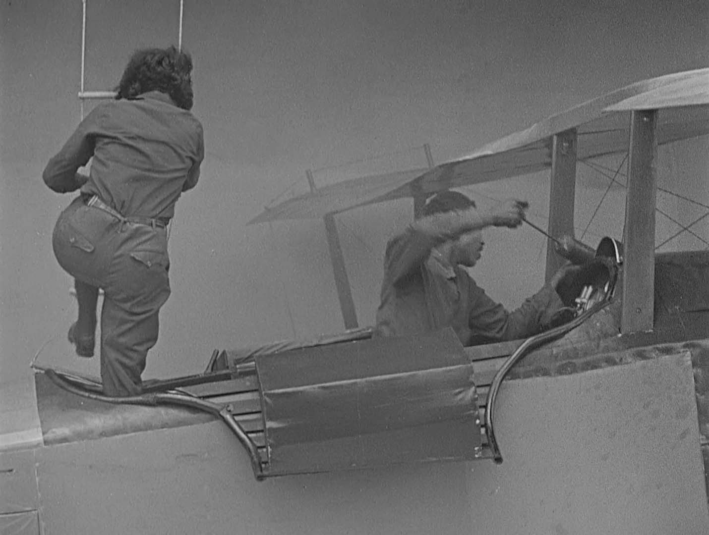 Good though the cast turned out to be, the loss of experienced pilots meant that Norman’s options were limited. (Assuming he ever had the budget to include much airplane stuff, which is doubtful.) The Flying Ace rather famously shows no flying. Tucker and Stokes both taxi their planes around the airfield and then we are shown closeups of the cockpits against a sky backdrop but very few shots of planes in the air. It’s not really a dealbreaker but it’s another element that exposes the picture’s micro budget.