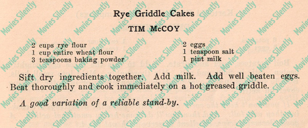 Welcome back! I’m cooking my way through the 1929 Photoplay cookbook and today’s recipe is from one of the big western stars of the era, Colonel Tim McCoy.