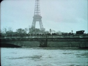 Today, we’ll be looking at a four-minute actuality film taken during the 1910 flood of Paris. Unusually heavy rains in late 1909 and early 1910 caused the Seine to rise 26 feet above normal levels and a violent January storm finally caused the river to burst its banks, which resulted in most of Paris being completely flooded. Thousands of people were evacuated and the water did not return to its usual levels until mid-March of 1910.