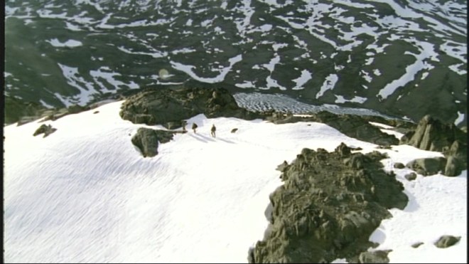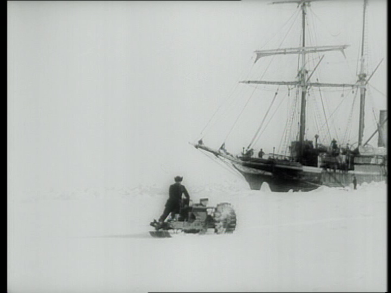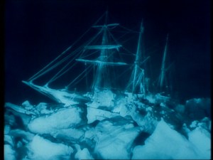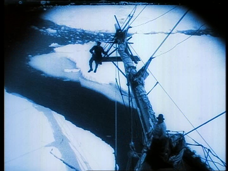 The majority of the film is taken up with scenes from the Endurance’s long stint in the ice. Once the ship is crushed in the floes, the amount of footage is minimized. This is not a polished documentary in the modern sense. Hurley was fighting for his life as much as any man in the party and there were times when he simply could not capture the action on film. He was living it. (The weight of the movie camera meant that it had to be left behind once the Endurance was abandoned.) However, Hurley smooths over missing footage with title cards, still photos, paintings and motion pictures taken on a return trip to South Georgia. He manages to construct a narrative with available material and, considering the hardships he endured to bring this footage back with him, we can forgive these very minor issues.