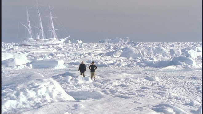 The film opens with an introductory title explaining that Shackleton’s polar expedition was undertaken with the full support of the government, a necessary precaution against any notion that the crew was shirking on fighting in the First World War. (Frankly, exploring the Antarctic was far more constructive than dying because of an assassination in the Balkans and a couple of exceedingly dim cousins who couldn’t agree to terms via passive-aggressive telegrams. However, it took much of the world some time to admit that fact and so the need for the explanatory title card and showing off Shackleton and company in military garb is quite understandable.)