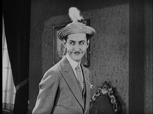 Charley arrives at the house and presents Martha’s mother (Milla Davenport) with a letter stating that he has spells of madness but can be called back to sanity with a few tweets on a whistle. And then he goes to work. Words can’t adequately describe Chase’s antics as he twitches his feathered hat, plays with his imaginary Airedale, attempts to kick garden party guests and takes his revenge on the rude governor. Of course, the act works like a dream and Martha’s parents are ready to call the whole thing off when Charley sees exactly who his would be fiancée is and realizes his mistake.