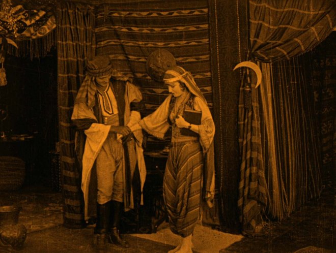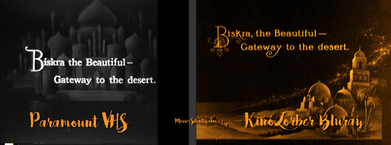 Before we begin, a quick rundown of what we will be doing. Normally, I leave the frame-by-frame comparisons to other reviewers because, frankly, they drive me bats and I just don’t care that much if scene 34 was 0:00:03 longer in this edition. In this case, though, I will be making an exception because comparing cuts of The Sheik is a little hobby of mine. (Another movie that I enjoy doing this with is Michael Strogoff, in case you were dying of curiosity.) So we’re going to get geeky!