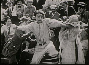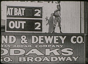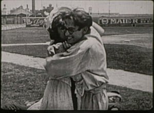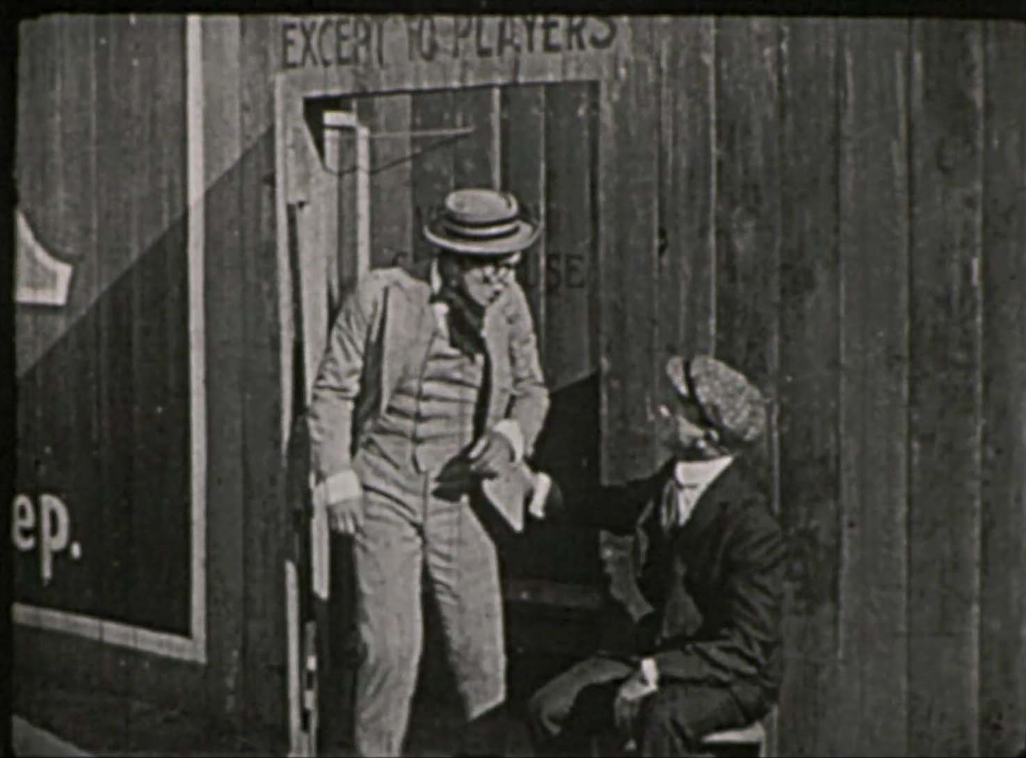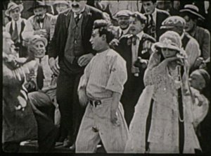 Hi Fritzi. Here’s one I have to see as both a silent comedy and baseball fan. I wonder if it was shot in Washington Park near downtown LA, home of the Pacific Coast League Los Angeles Angels. The other choice would be the Maier Park in Vernon, home of the PCL’s Vernon Tigers. A little bit later, Roscoe Arbuckle owned a piece of the Tigers. I think the bits of the stands and the ads you can see on YouTube look more like Washington Park.