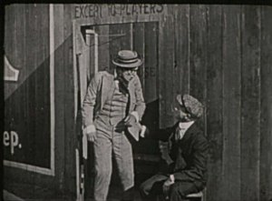 Harold Lloyd is works in a men’s clothing emporium with Snub Pollard. (His character was originally called Ginger but the reissue print I viewed uses the more familiar Harold.) When Snub accidentally cuts off the tails of a customer’s coat, Harold discovers baseball tickets inside. The perfect date! He immediately calls Bebe Daniels to ask her to go with him to the game but what he doesn’t know (da-da-DUM) is that Snub has stolen the tickets from his pocket.