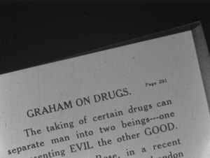 The film begins by showing us a page from an open medical book, which claims that it is possible to divide good from evil in an individual by using certain drugs. Scholarly writing, that! Now, you or I would probably write this off as a screwball notion but to a physician named Jekyll, this represents a fascinating possibility. He mixes up a batch of the drug and drinks it himself. What could possibly go wrong?