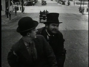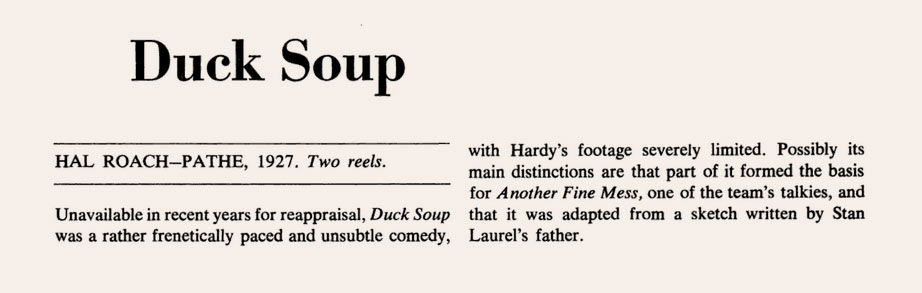 Stan Laurel and Oliver Hardy’s film careers intersected before they were formally paired at the Hal Roach lot. The Lucky Dog (1920 or 1921, the records are not good) was produced by Broncho Billy Anderson, starred Laurel and included Hardy in a relatively small role as a bandit. In 1926, Hardy had a supporting role in the Glen Tryon comedy 45 Minutes from Hollywood and Laurel had a blink-and-you-miss-it bit. Then in 1927, the two men made Duck Soup, a comedy based on a scenario by Laurel’s father.
