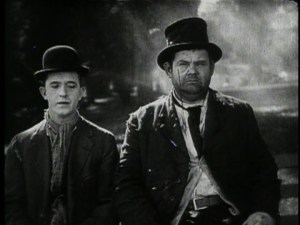 Stan and Ollie in Another Fine Mess are shabby but clinging to some middle-class respectability. (Not unlike Charlie Chaplin’s Little Tramp. Laurel and Chaplin were part of Fred Karno’s Company, arrived in America in 1910 and… Well, I’ll leave the controversial can of worms unopened.)
