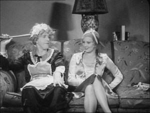 While the Stan and Ollie characters in Home from the Honeymoon are burglars with dubious cockney accents, Duck Soup softens them into vagrants. Sure, they still are willing to steal every valuable from the mansion but they didn’t go inside with that intent. (The characters were softened further in Another Fine Mess, which we will discuss in a bit.)