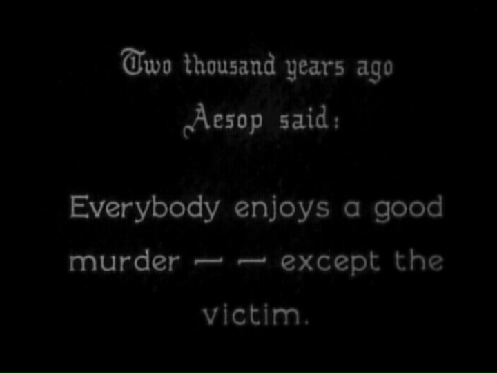 I should note that while the AFI Catalog lists the characters’ names, the version I saw does not use them in the title cards. However, since it’s easier than typing “Hey, you!” a bunch of times, I will use the AFI names where applicable. Also, the names have a rather Clue-like flavor as they are all colors: Black, White, Green, Grey… Is Hasbro paying royalties to Griffith’s heirs?