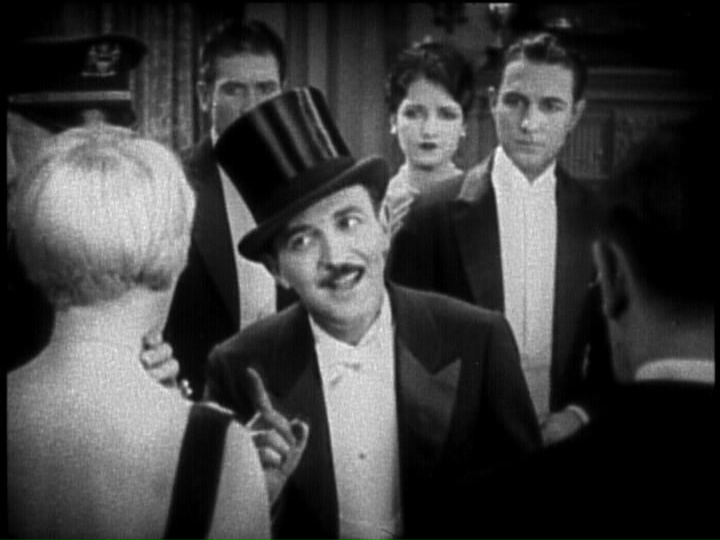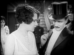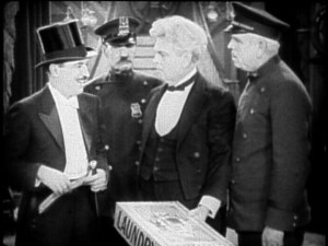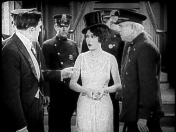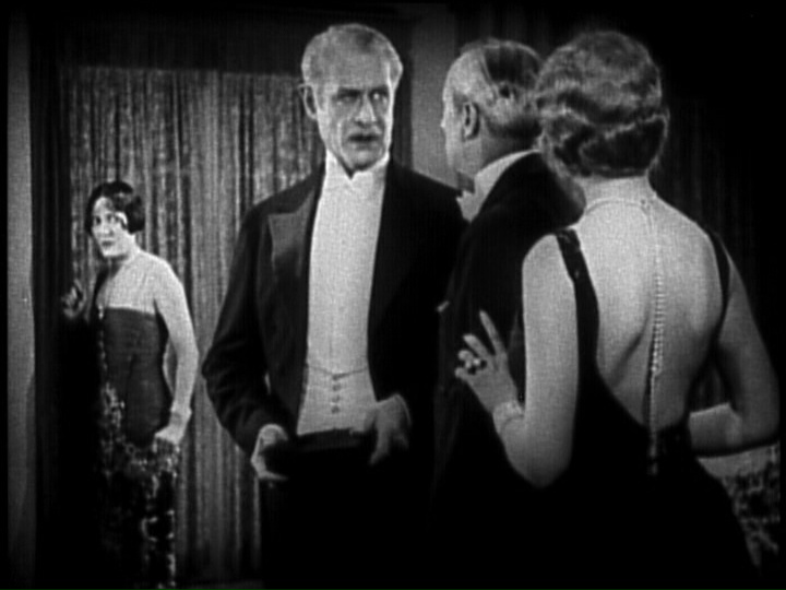 Mr. Green (Raymond Griffith) is planning to go to the theater and finds Mr. White’s death to be frightfully inconsiderate. He hopes for an open and shut case and a line of beads from the body to a grandfather clock seem to indicate that the killer has left a trail. Dorothy (Dorothy Sebastian, fresh from George White’s Scandals and maker of boffo gingerbread) is found inside the clock with the necklace and her dress embellishments match the beads found beside the body.