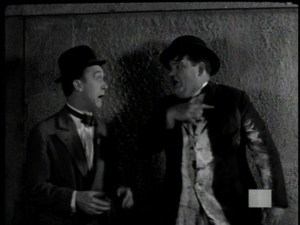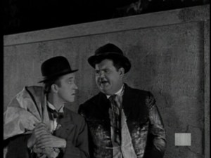 The boys were employed by a different mad scientist in Dirty Work (1933) and it contains the wonderful quote: “Somewhere an electric chair is waiting.” They would also deal with a white sheeted “ghost” in an extended chase scene in A Chump at Oxford. In a 1925 Hal Roach comedy entitled Moonlight and Noses, Clyde Cook and Noah Young attempt to steal a body from a graveyard. Laurel wrote and directed the picture but, alas, a complete copy does not survive.