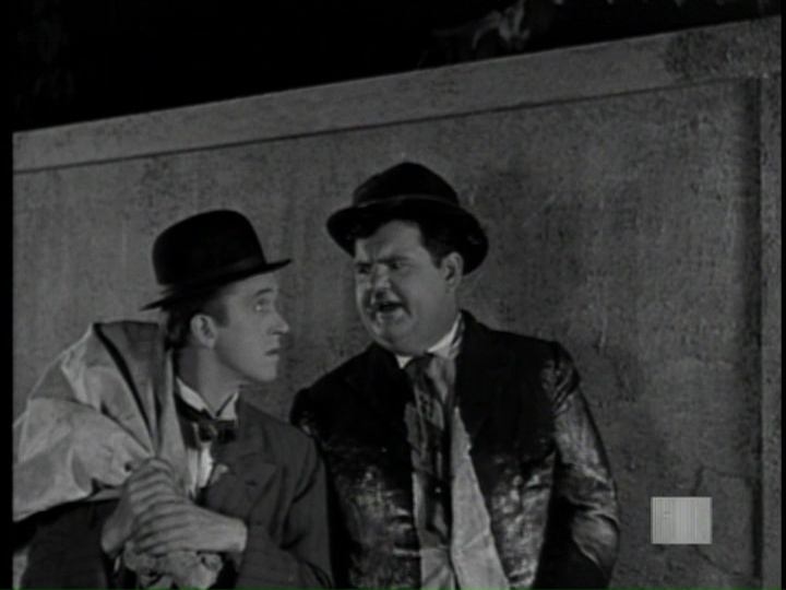 Habeas Corpus is also notable as an early Hal Roach title with a sound-on-disc score. The movie is still silent as the soundtrack discs contain only music and sound effects, similar to the release of Don Juan a few years before. It’s a highly effective score, though it does not contain the famous Laurel and Hardy sound. One of the pieces featured is Funeral March of a Marionette by Charles Gounod. If it sounds familiar, Alfred Hitchcock used it for his television show but the piece was actually written in 1872 and was a perennial choice for that scary/funny tone.