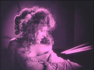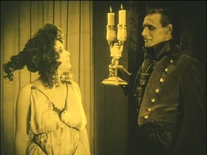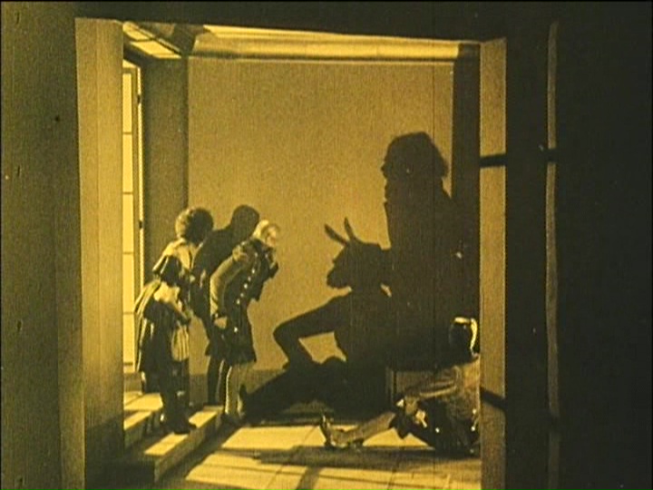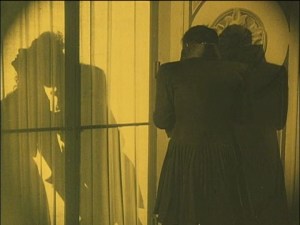 Further, while the Woman is understandably repulsed by this look into the souls of her admirers, her acceptance of her violent husband seems at odds with the contempt she showed earlier. I realize that the shadow play was meant to be a transformative experience but I’m also pretty sure that I would sleep with one eye open if I were the Woman. Some sort of image reflecting this notion would have been appreciated. (I’m thinking, of course, of the wonderfully ambiguous final iris shot of Werner Krauss in The Cabinet of Dr. Caligari.)