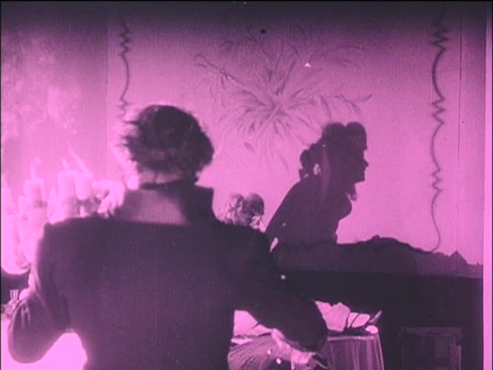 The setuo: Man loves his stylish wife dearly but her flirtatious manner is driving him mad, especially since she seems to have taken a younger lover. With the husband off brooding and fantasizing about the matter, the wife entertains her lover and the trio of gentlemen. They soon hit on a game of each man causing his shadow to lewdly interact with that of the wife.