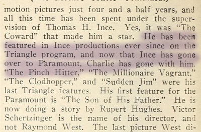 There’s stiff competition, alas, but Charles Ray has a pretty good claim to the title of Huge Film Star You’ve Never Heard Of. Enormously popular during his heyday, he infamously sank his personal fortune into an expensive flop and his career never fully recovered. In 1917, though, Ray was at the top of the movie world, one of the stars (along with William S. Hart) who followed producer Thomas Ince from Triangle to Inceville (distributed by Paramount). The Pinch Hitter was made under Ince’s supervision before he parted ways with Triangle.