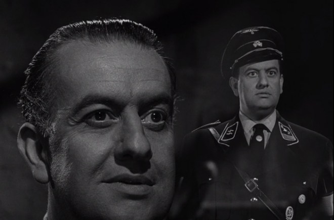 Alfred Becker (Joseph Schildkraut) is still there, still wearing his prisoner’s stripes. He reminds Lutze of the pain he inflicted and declares that he will pass sentence on him for his crimes. Of course, there is a twist and most of you will probably see it coming but the actors sell it.