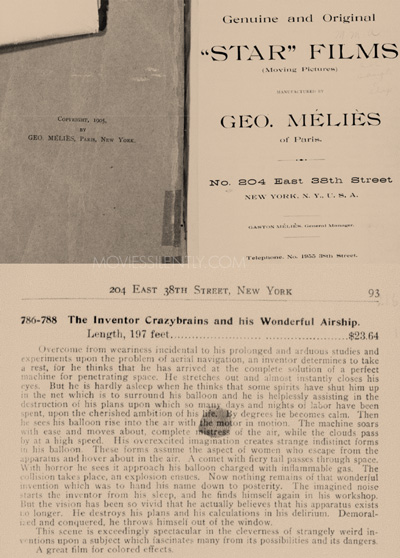 First, let’s clear up a minor disagreement. The exact date of this film’s release has been a subject of debate. Some experts say 1905, some say 1906 and still others claim 1907 as the year of release. Well, I just pulled out my handy-dandy 1905 Star Films catalog (that’s the brand Méliès released his films under) and lo and behold, here’s Professor Crazybrains! (Of course, catalog dates don’t always jive with their actual time of release but it does make the 1905 release more likely than not.)