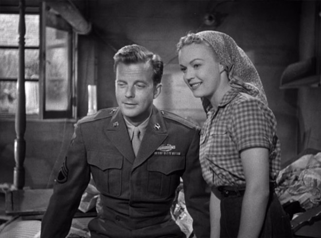 Let’s face it, there’s a 95% chance that you watched this movie because Marilyn Monroe was on the cover. Well, her role is as skimpy as the outfits her character wears. She’s a WAC buddy of Jim and he does a fan dance around pronouns that would make Sally Rand gasp. “My old buddy, Bobby, a corporal…” Then he pulls the “You’re a typical jealous woman” routine when Connie rightly points out that he made almost no effort to share the fact that his pal is a former model. He later gives himself away by openly lusting after the ex-corporal. (Just one punch, that’s all I ask. Just one good sock in the jaw.)