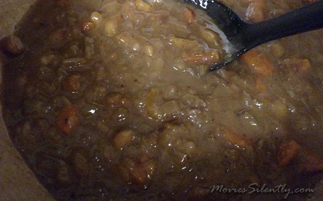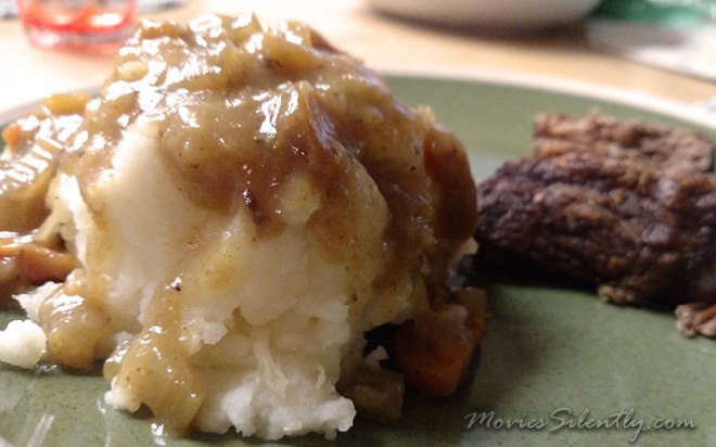 Score: 5 out of 5. Wow, this is what American comfort food is all about! The gravy is pretty chunky and if that’s an issue, you can either run it through a sieve or give it a whirl with an immersion blender. I don’t mind the chunks of veggies myself.