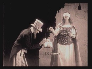 That being said, the overt propagandistic elements have a definite 1910s flavor, at least in my opinion. The opening and closing shots of Uncle Sam’s clawed fingers stealing Panama and laying cash on the scales of justice would both be quite at home in a WWI-era film.