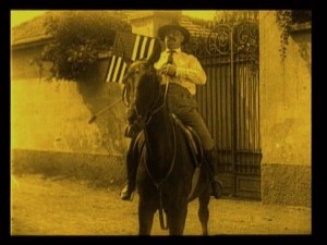 Claws of Gold features a brief sequence of hand-coloring when the Colombian flag flies. National flags were a popular subject for film color from the very beginning and, needless to say, were valuable for emotional impact, as was the case with the hand-colored red flag in Battleship Potemkin. Patriotic fervor is definitely the goal in Claws of Gold but rather than fluttering triumphantly, as was the case in Potemkin, the flag of Colombia is being lowered from its rightful place before being returned to dignity in the film’s conclusion.