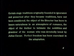 Helen Gardner’s Cleopatra is certainly a product of its time and it would be unfair to hold that fact against it. It is an impressively ambitious production made at the time when feature films were just starting to gain momentum in the American film industry. While it definitely needs to be viewed in the context of other historical films of the period, it does have great entertainment value to a sympathetic viewer.