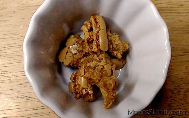 And here is the finished product, accompanied by one of Sidney Drew’s peanut cookies. My guests had fun choosing their macaron flavor, a major advantage of the modern, super flavorful product. Most turned down the sherry for various reasons but I have to say that I was rather in favor of the alcoholic variation.
