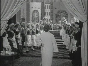 Karl has no such science-fiction escape waiting for him, of course, but he is the latest in a long line of Lubitsch characters who exist at the center of a swirl of synchronized humanity. At this point in his career, Lubitsch was obsessed with the power some people possessed to command obsessive attention, whether through influence, rank, notoriety, beauty or sex appeal. For a further example, check out The Eyes of the Mummy.