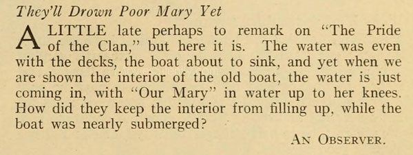 Loved this look at complaints. I’ve often had the same complaint as to one minute an actor or actress all soaking wet and in the next scene they look more dry, a lot more dry, than wet. Is Jno. an abbreviation for Jonathon?