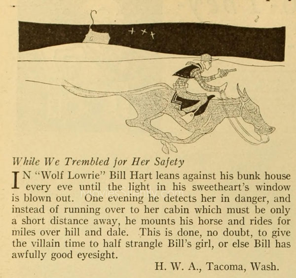 Questionable geography is the main complaint from Tacoma, Washington. However, I should point out that Hart may have just wanted a dramatic moment for his beloved pinto, Fritz. The film survives but has not yet been released on home video. (Let me know if you have heard anything!)