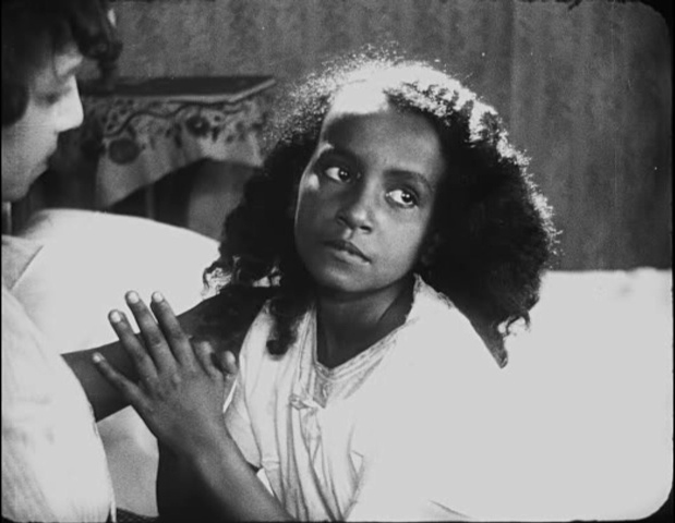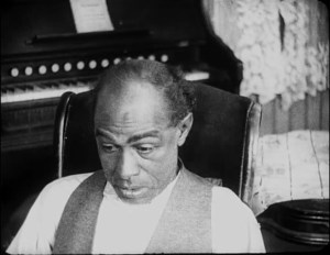 The story opens with Morgan a shell of his former self, his only comfort is the undying faith of his young daughter and the more jaded but still tender affection of his wife, Fannie (Myra Burwell). However, he cannot manage to tear himself away from Simon Slade’s bar. Slade is played by Lawrence Chenault, who viewers may recognize from his role as Yello-Curley in Body and Soul, an Oscar Micheaux production that starred Paul Robeson, who replaced Charles Gilpin in Emperor Jones. (Ten Nights in a Bar Room and Body and Soul are often compared as double rivals due to the Gilpin-Robeson connection and the competition between Micheaux and the Colored Players of Philadelphia.)