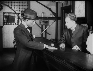 The bar is a place of moral degradation, where young men lose their all to crooked gamblers and young women are targeted by lotharios. In fact, the bar is presented as the root of all evil in the town of Cedarville. (While Hollywood was nearly done with Ten Nights in a Bar Room, its influence can be seen in both Hell’s Hinges and The Strong Man, both of which conclude with the total destruction of the local den of sin.)