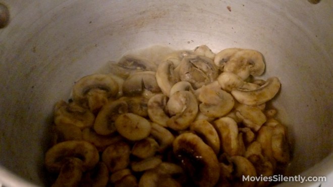 First confession: I didn’t peel the mushrooms. (Modern farmed mushrooms are not grown in manure, so there aren’t really any nasties to cut away.) I washed mine and cut them up. The cooking time may sound long but mushrooms are impossible to overcook.