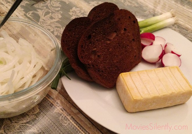 I also purchased a loaf of good pumpernickel (is that more of a black bread?) and the radishes. I skipped turnips because they seemed superfluous together with the potatoes.