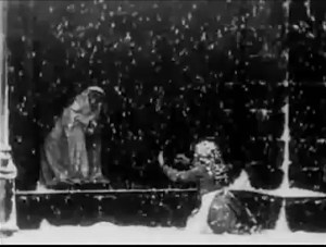 While The Little Match Seller makes excellent use of special effects it keeps its feet firmly planted on the ground, an element that was common in early British film. For comparison, R.W. Paul’s zany trick film The ‘?’ Motorist revolves around a couple attempting to avoid a traffic citation. The fact that they drive into outer space and zip around the rings of Saturn is neither here nor there. Cecil Hepworth’s Rescued by Rover involves a genius dog saving the say but maintains its cozy, homey feel thanks to the fact that the cast is made up of the Hepworth family and Rover is played by the family dog.