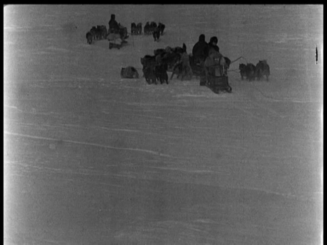 There is also footage of Amundsen and his four man team departing for the Pole. Such shots are seen again and again in exploration/adventure footage. They are the last chance to see the adventurers before their hoped-for return and provide a haunting end if there is no return. (See The Epic of Everest for what is likely the most famous example.)