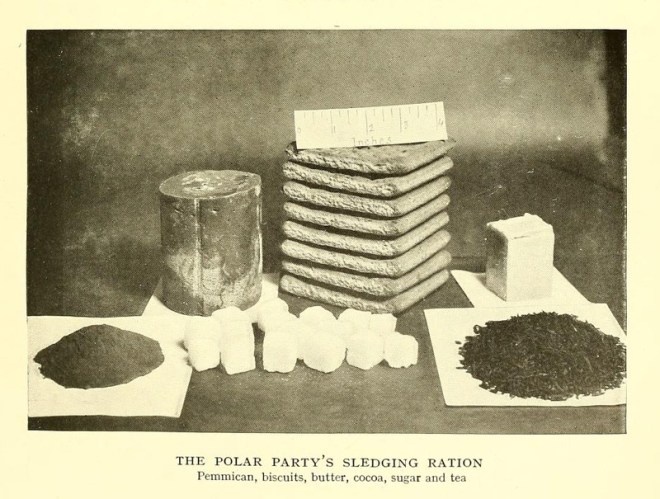 (By the way, “hoosh” was the name for a particular Antarctic meal, a stew of pemmican that was thickened with crushed biscuits. Probably much nicer and satisfying than simply chewing on the ingredients. Should you wish to give it a shot, here is a recipe.)