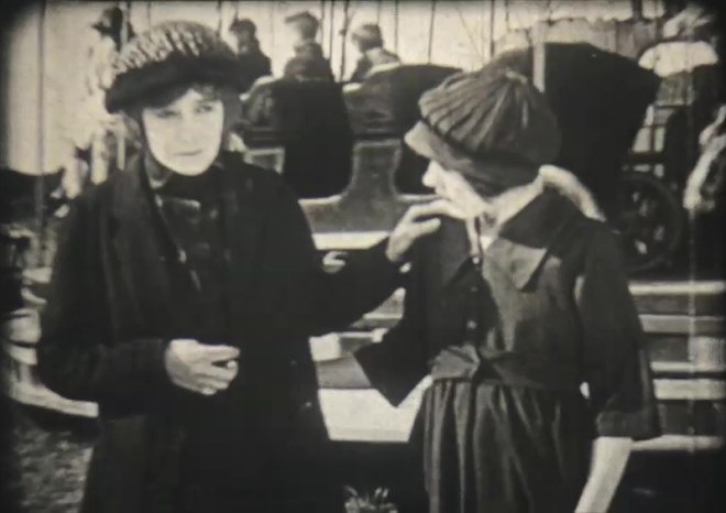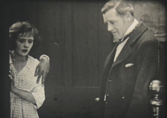 9.5mm collectors would engage in DIY alterations to their prints, new titles and the like. One of the major changes to the story is making Newson (Warwick Ward), the sailor who buys Susan, a former admirer of hers from the old days. This, of course, changes the tone of the story and simply makes it out to be a disgusted wife leaving her drunken man for an old flame, which in turn removes blame from Henchard. Since this change is effected entirely through title cards, I cannot tell whether this was part of the original film narrative, a change for the home viewing market (perhaps to make the story more palatable for children) or a decision made by a past owner of the print.