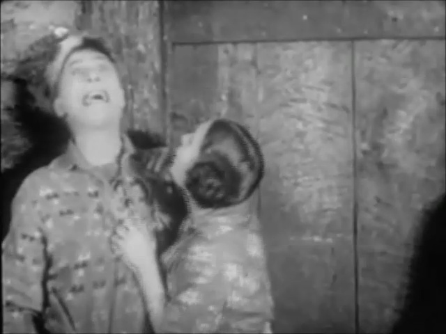 And sure enough, here is the scene. I once had a cat who leapt from the mantle to the top of a wood stove not unlike what is in Blue Blazes Rawden. He was only on the stove for a fraction of a second but the poor baby’s paws were burnt to the blistering. (We whisked him to the vet, got his feet bandaged with cute purple socks and fussed on him until he got better. He made a full recovery and we blocked all feline entry to the mantle.) How Joe survived this particular pose with the skin of his hand intact is anybody’s guess. By the way, Joe is played by future western star Jack Hoxie.