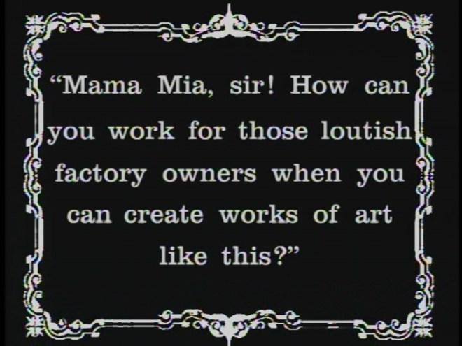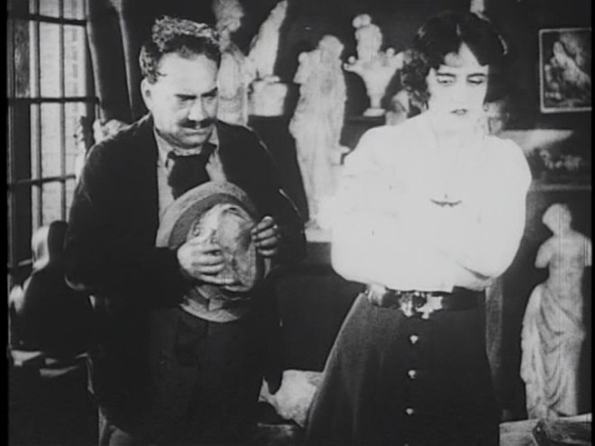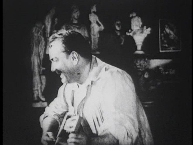 It’s the story of Tommasso (Caruso), a poor sculptor who works in plaster and dreams in marble. He gets a certain amount of respect around Little Italy because he claims to be the cousin of Caroli (also Caruso), the famous opera star. Tommasso is courting Rosa (opera singer Carolina White) but her father wants her to marry Lombardi (Henry Leone), a rich grocer.