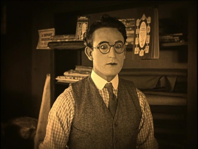 Lloyd was funny, of course, but even when he was, say, captured by flapper pirates, his characters tended to keep at least a toe in reality. Interestingly enough, Lloyd played a tailor in his very first film with the Glass character, Over the Fence, in which he tries to go on a date with Bebe Daniels using purloined baseball game tickets.