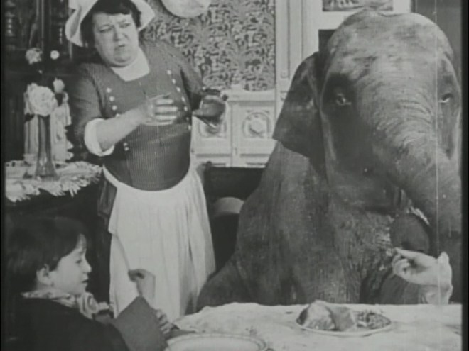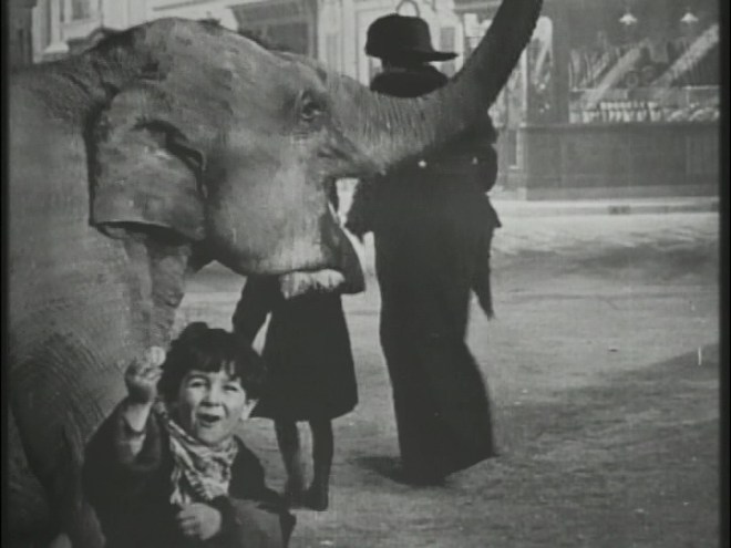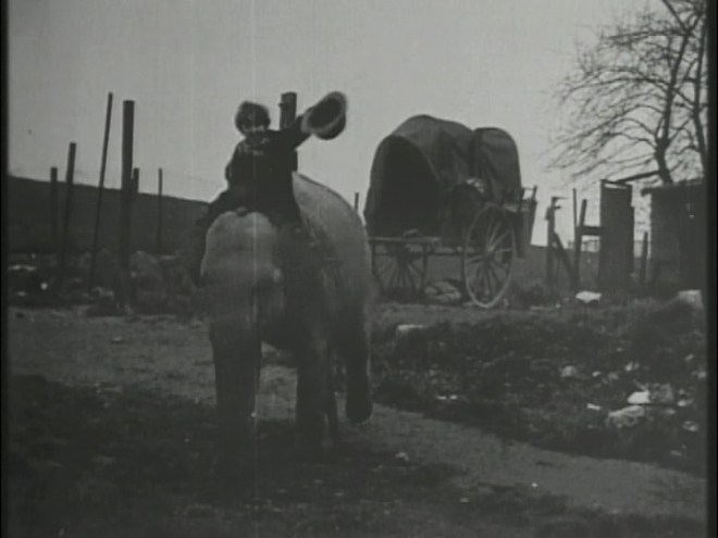 Louis Feuillade didn’t just make serials and this short is a showcase for child comedian Bout de Zan. The plot is very much what it says on the tin. Boy meets elephant, boy steals elephant, boy and elephant terrorize streets of Paris, as one does.