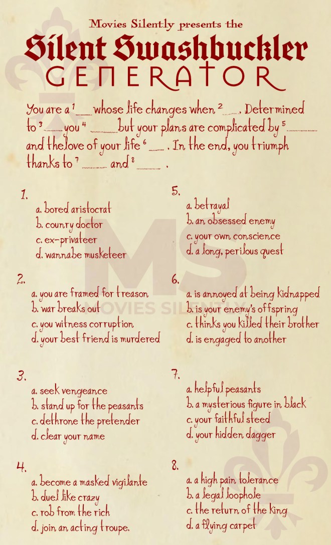 I am in the mood to swash some buckles (or is it buckle some swash?) and so I thought I would have a bit of fun and make a handy-dandy Swashbuckler-o-Matic. Have fun!