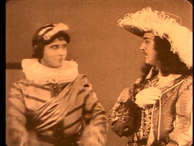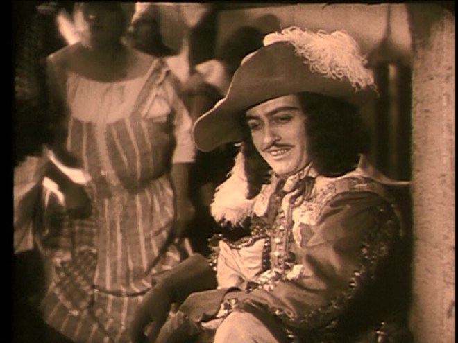 The stock cast names may be familiar even to people who do not study the art: Columbine, Harlequin, Pantaloon, Scaramouche. The romantic heroine was often named Isabelle and the Capitaine was a spoof of the swaggering mannerisms displayed by some Spanish soldiers of the time. A blustering braggart, the Capitaine was reimagined as Scaramouche. This is appropriate as it’s pretty clear that author Rafael Sabatini borrowed more than a little from Captain Fracasse for his novel Scaramouche. (I highly recommend the silent adaptation of that book and I think it would make a great double feature with this picture.)
