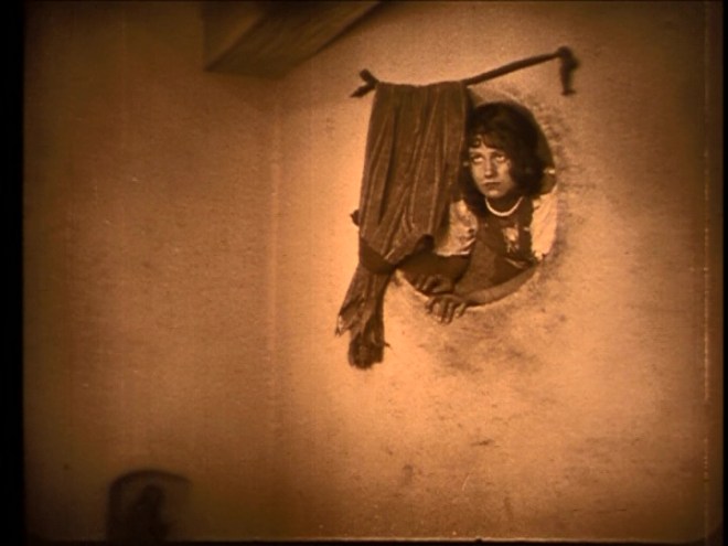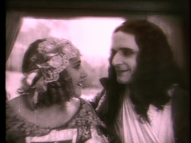 Director Alberto Cavalcanti was born in Brazil but established his career in France as a designer and then director; his most famous silent film is probably Rien que les heures (1926), a city symphony celebrating Paris. While often listed as an avant-garde director, Captain Fracasse shows that he was comfortable in the familiar and old fashioned as well. While there are enough tracking shots and point of view shots to satisfy anyone interested in the unchained camera of the 1920s, the film is also decidedly traditional. We have a good boy and a good girl and they are threatened by a bad man. (In any case, the cinematography is not nearly as extreme as that in Raymond Bernard’s The Chess Player.)