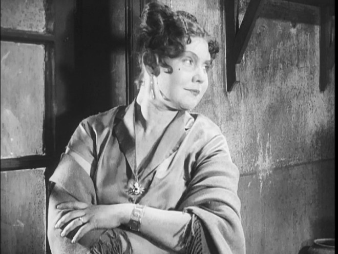 Like Ilya in The Girl with the Hat Box, Paranya is defined by her country fashion and particularly her large felt boots and long, full peasant skirts, which give her a compact, child-like appearance. Vera Maretskaya is a delight in the role with her expressive eyes and zippy body language. It’s easy to understand her longstanding popularity with Russian audiences. (Her life was apparently a tragic one behind the scenes, she lost family in Stalin’s purges.)