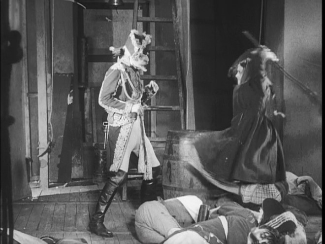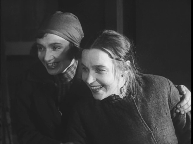 Ada Vojtsik had been the leading lady of The Forty-First and you may recognize her as the young czar’s mother in Eisenstein’s Ivan the Terrible. I rather enjoyed the warm friendship between Fenya and Paranya; for an apples to apples comparison in American film, I recommend looking at the relationship between Clara Bow and Priscilla Bonner in IT. Vladimir Batalov makes a nice love interest but the romance never reaches the madcap levels found in The Girls with the Hat Box.