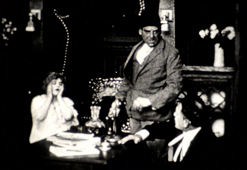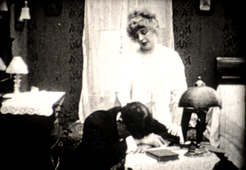 After Midnight is a strange, moody little picture about a burglar (Anderson) in a well-to-do flat. He is working on the safe but keeps being interrupted by the lady of the house (Marguerite Clayton, Essanay regular and Anderson’s usual co-star). Her husband (Lee Willard) is not yet home from his club and he refuses to return when she calls him.