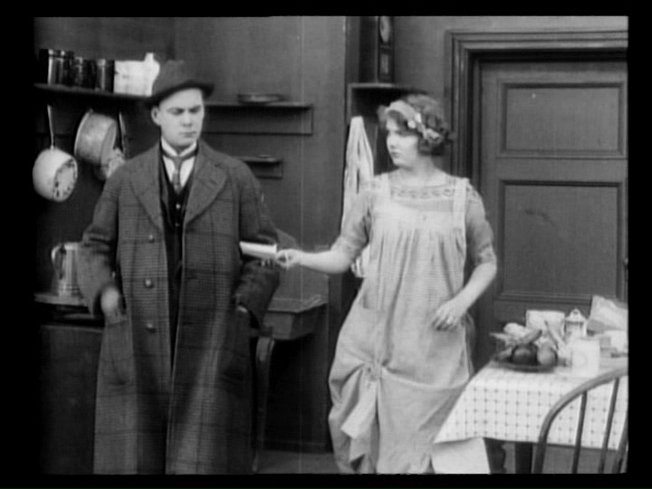 Diana (Marian Swayne) and Gerald (Fraunie Fraunholz) are an affectionate couple but they each have the same unfortunate flaw: jealousy. One day at his office, Gerald has perfume spilled on him by an obnoxious salesman. The same day, Diana discovered Bridget the maid canoodling with a workman and he leaves in such a hurry that he forgets his gloves. (By the way, at least one book lists Billy Quirk as playing the husband. However, the majority of texts state it is Fraunholz and he looks like Fraunholz to me so I think I am on fairly solid ground here.)